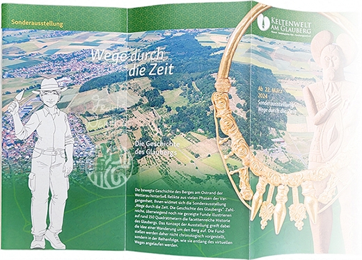 Illustrationen für das hessische Museum Keltenwelt am Glauberg. Darunter die Archäologin in der Anwendung auf einem Flyer. Außerdem haben wir noch eine Animation dieser Figur für die Ausstellung erstellt, die die Besucher auf einen Rundgang zum Glaubergplateau mitnimmt. | Illustrations for the hessian museum Keltenwelt am Glauberg. Below: the final flyer with the illustration. Beside that we also made an animation of the character guiding the visitors around the Glauberg plateau. |